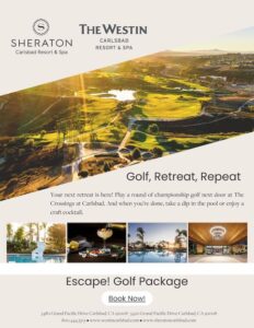 CAPE REY Located near The Crossings at Carlsbad Golf Course is Cape Rey Carlsbad Beach, a Hilton Resort & Spa where Stay to Play packages are available year-round. Feel the coastal cool, sophisticated vibes whether you spend the day playing golf, rejuvenating at Ocean Crest Spa, dining at Chandler’s Oceanfront